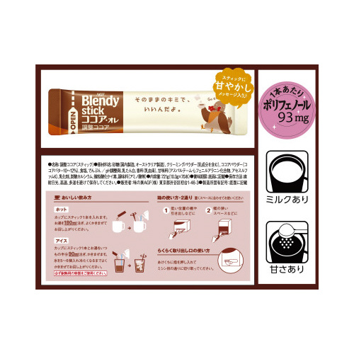 ココアとミルクがまろやかに溶け合った、風味豊かなミルクココアです。粉末タイプのスティックココアだから飲みたいときに簡単にミルクココアがお楽しみいただけます。オフィスに最適なお得用大容量サイズ。