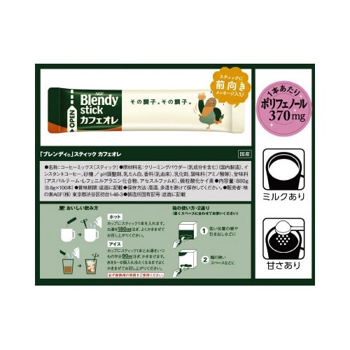マグカップサイズで手軽に楽しめるリッチな味わい、インスタントコーヒーで作るカフェオレとの違いをご体験ください。スティックコーヒーだから持ち運びにも便利で、いつでも新鮮。オフィスに最適なお得用大容量。