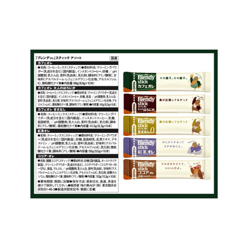 手軽に楽しめるクリーミー&スィートな味わい。気分や好みに合わせて、好きな甘さのカフェオレやフレーバーを楽しめる、ブレンディスティックのアソートタイプ。