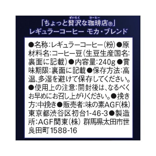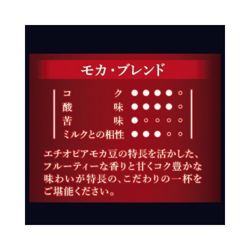 エチオピアモカ豆の特長を活かしたレギュラーコーヒー。フルーティーな香りと甘くコク豊かな味わいをお愉しみください。