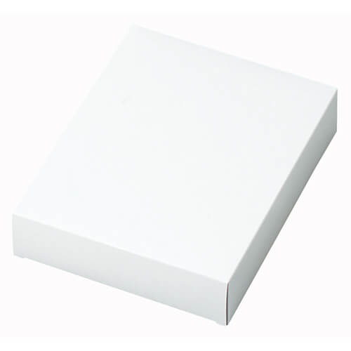 厚紙を使用した、シンプルなギフトボックス。箱のサイズは200×160×55mmで、使いやすいホワイト仕様です。お菓子や雑貨などのギフトラッピングにいかがでしょうか。