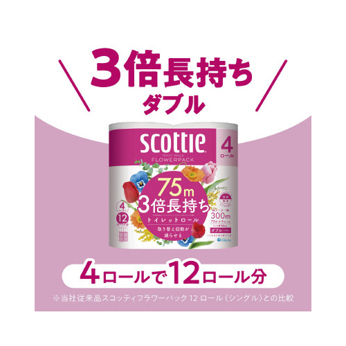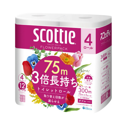 4ロールで12ロール分(25mロール換算)の長さ。たっぷり使えて収納コンパクト。