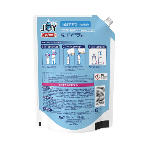 ※飲み物ではありません。使用上の注意:子供の手の届くところに置かない。認知症の方等の誤飲を防ぐ為、置き場所に注意する。用途外使用不可。使用後は水で手をよく洗い、お肌のお手入れを。荒れ性の方や長時間使用時、原液をスポンジ等に含ませ使う時は炊事用手袋を使う。流水の場合、食器及び調理用具は5秒以上、ため水の場合は水をかえ2回以上すすぐ。応急処置:目に入った場合はこすらず、ただちに多量の水でよく洗い、医師に相談する。万一飲み込んだ場合は無理に吐かずに口をすすぎ、水を飲む等の処置をし、異常が続く場合は医師に相談する。薄めた液を長時間おくと変質する事がある。つめかえ時にキャップを開けるとき、キャップ下部の切れ込みにご注意ください。