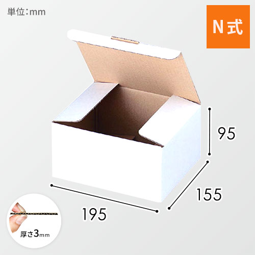 材質はB/F(3mm厚)のダンボールで、表面の色は白(エンボス柄)です。