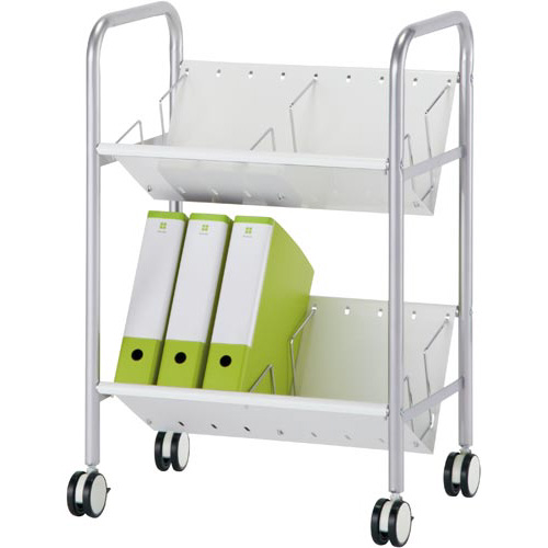 整頓しやすい仕切り棒がついて大型キャスターで移動しやすい明るいホワイトのファイルワゴンです。