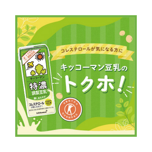 コレステロールが気になる方へ。特定保健用食品、日本人間ドック健診協会推薦の豆乳です。通常の調製豆乳より大豆固形分が10%多く含まれています。(当社比)