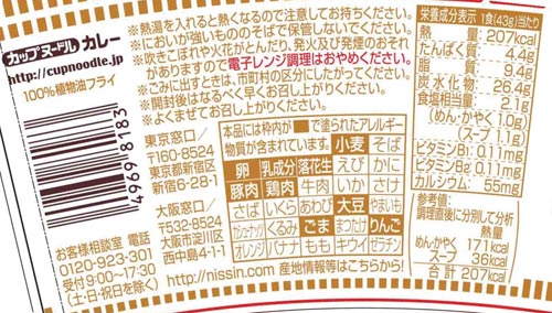 ●カロリー/43g(麺重量30g)207kcal