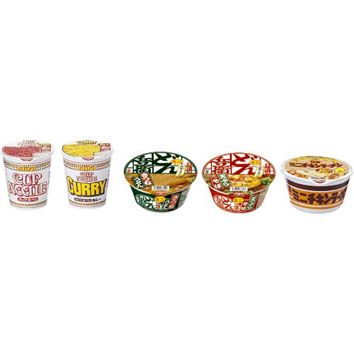 ●セット内容/ミニカップヌードル(36g)、ミニカップヌードルカレー(43g)、ミニチキンラーメン(38g)、ミニどん兵衛そば(46g)、ミニどん兵衛うどん(42g)