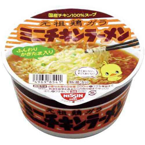 ●カップヌードルミニ:163kcal、カップヌードルカレーミニ:207kcal、どん兵衛きつね東日本風ミニ:183kcal、どん兵衛天そば東日本風ミニ:218kcal、ミニチキンラーメン:166kcall