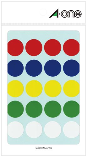 豊富なカラーで識別に便利な丸型のラベルです。グラフや分布図の作成、在庫管理など様々な用途でお使いいただけます。5色がセットになったアソートタイプです。