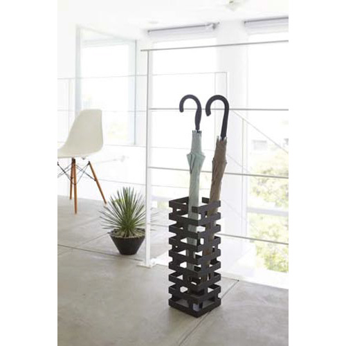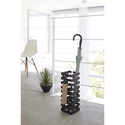シンプルモダンでコンパクトな薄型傘立て。折り畳み傘も引っ掛けて収納可能。濡れた傘が乾きやすい風通しのよいデザインです。