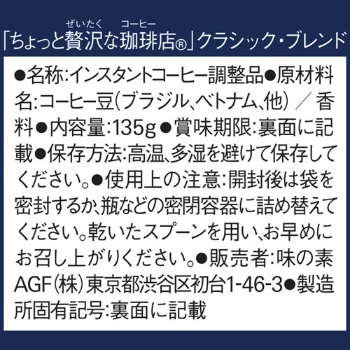 香ばしい香りと重厚な味わいをお愉しみいただけます。AGFの詰め替え用袋タイプは、インスタントコーヒーではじめてのエコマーク認定を取得した省資源容器です。