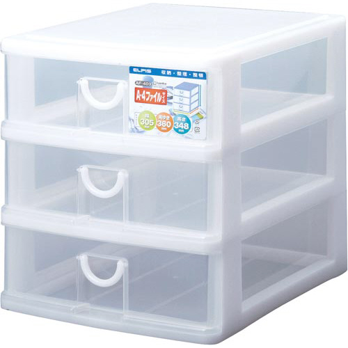 A4ファイルサイズで浅型3段の引き出しケース。ファイルやバインダーなどがゆったり収納可能!またエルピスA4ファイル専用トレーを追加すれば提出書類や回覧書類などの一時保管にも便利!