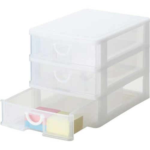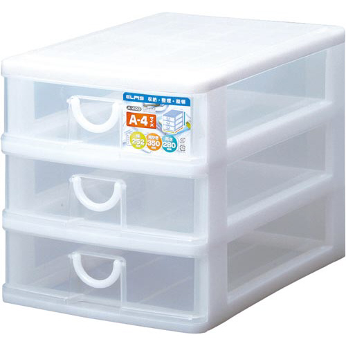 A4用紙サイズで浅型3段の引き出しケース。書類の一時保管や整理に最適!机上の小物関連を、これ一つでスッキリ整理!またエルピスA4専用トレーを追加すれば提出書類や回覧書類などの一時保管にも便利!