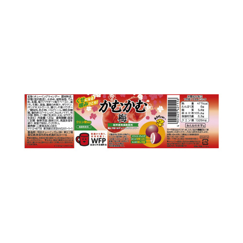 紀州産南高梅使用。クエン酸配合。すっきりとした甘酸っぱい味が特徴です。ソフトコーティング、外生地、内生地の3層構造の楕円型。1ボトル120gで約66粒入り。しそ風味の「梅」商品です。