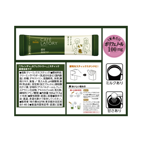 高品質な人気のスティックシリーズ。ほろ苦い抹茶と濃厚ミルクをたっぷり使った、こだわりの抹茶ラテです。スティックティーにお湯を淹れた瞬間に泡立つ、専門店の本格的な味わいをお楽しみください。