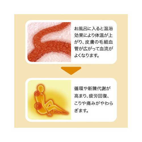 皮フあるいは体質に異常がある場合は医者に相談して使用する。使用中または使用後、皮フに発疹、発赤、かゆみ、刺激感などの異常が現れた場合、使用を中止し、医師に相談する。浴槽、フロ釜をいためるイオウは入っていない。天然の大理石浴槽には使わない。浴槽の汚れに入浴剤の色素が付着して色がつくこともあるので、汚れは早めに浴室用洗剤で落とす。入浴剤を溶かしたお湯を追い炊きすると、ぐくまれに配管やフロ釜の汚れが出てくることがある。