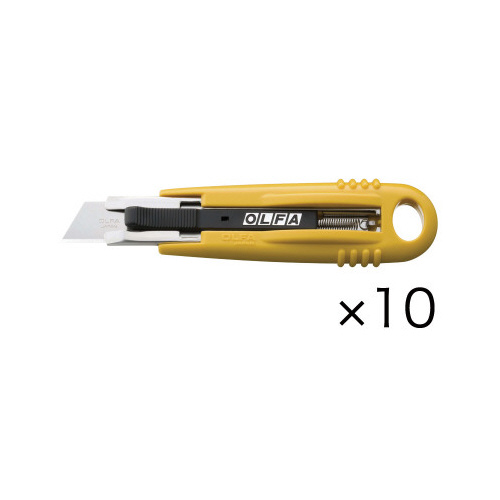スプリングで刃が自動的に戻る、安心設計の開梱用カッター。別売りのフックS刃、オールメタルセーフティカッター替刃も装着可能です。刃は前後使えます。
