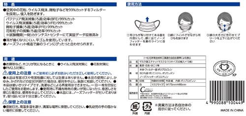 ●材質/本体:ポリプロピレン、耳ひも:ポリエステル・ポリウレタン、ノーズフィッター:ポリエチレン