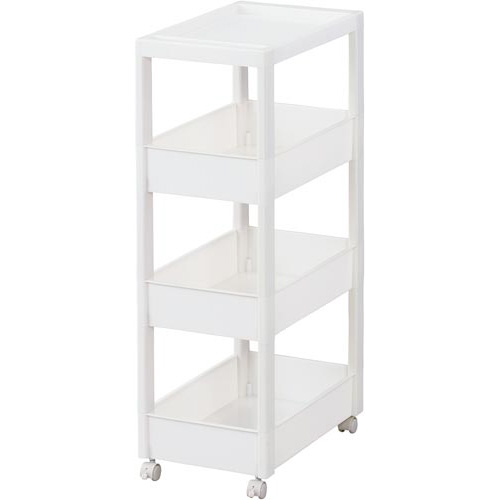 幅27cmのワイドタイプ。スタイリッシュなホワイトカラーで、キッチンや洗面所などあらゆるシーンでのストック収納におすすめです。