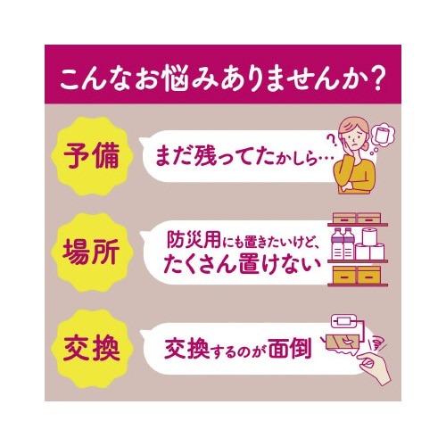 8ロールで12ロール分の長さの長尺トイレットロール!たっぷり使えて取替えの手間を軽減し、省スペース化で保管もスッキリ。くつろぐ花の香りつき。