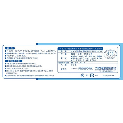 ●材質/本体:ポリプロピレン、耳ひも:ポリウレタン・ポリエステル、ノーズクリップ:ポリエチレン