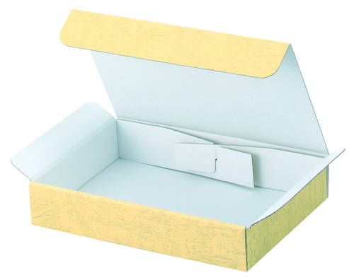 サイズが400×280×40mmで組立式(フタ・身一体式)のギフト・通販発送パッケージ。形状は開封しやすい差し込み蓋タイプのB式。材質はE/F(1.5mm厚)のダンボールで、表面の色はクリーム(薄い柄あり)です。 食品のラッピング・パッケージ・ギフト商品発送にいかがでしょうか。