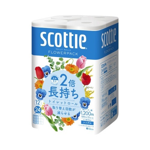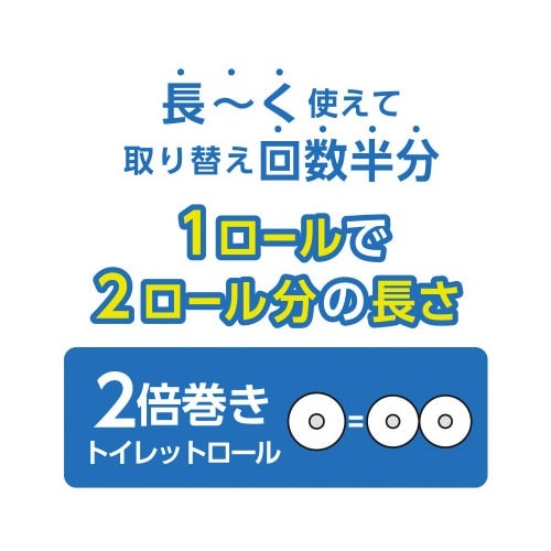 12ロールで24ロール分の長さ(1ロールの長さが2倍)・取り換えの手間削減・省スペースで保管すっきり・くつろぐ花の香り付き。