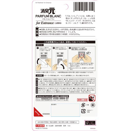 玄関に広がる生活臭をしっかり消臭。香水調の上品な香りを広げます。消臭成分が壁に留まり壁を防臭コートします。空間消臭と壁の防臭効果で24時間ニオわせません。
