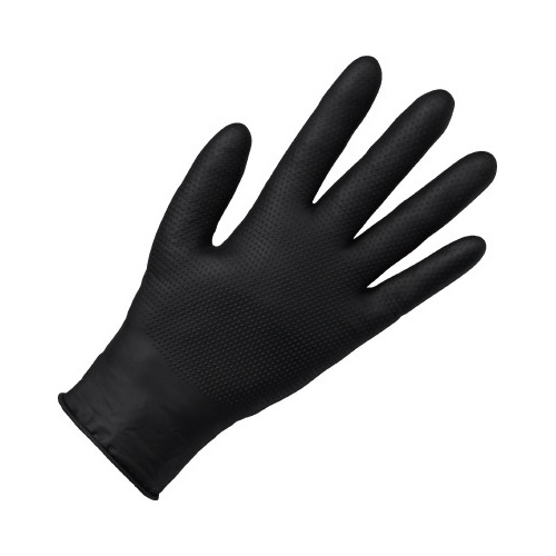 丈夫なニトリル極薄タイプ。表面は特殊テクスチャー加工。汚れが気にならないブラックカラー。経済的な左右兼用の50枚入。