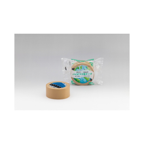 テープの基材と粘着剤に植物由来の材料を80%使用した、環境に配慮した製品。再生PET繊維を横糸に使用しており、グリーン購入法に適合。植物由来材料とリサイクル材料を使用することで、循環型社会に貢献。