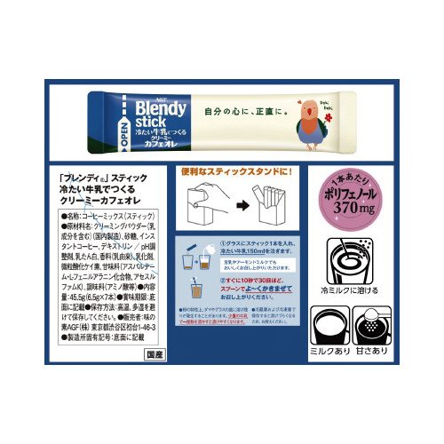 スティック1本に冷たい牛乳を注いでまぜるだけで、簡単にクリーミーでリッチなカフェオレが楽しめます。