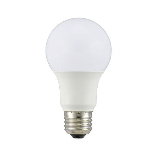 定格寿命40000時間、白熱電球60形相当の明るさ。配光角約280°の全方向タイプ。省エネ法2027年度目標基準達成。LED5年保証対象商品。
