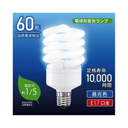 電球形蛍光灯 スパイラル形 E17 60形 昼光色