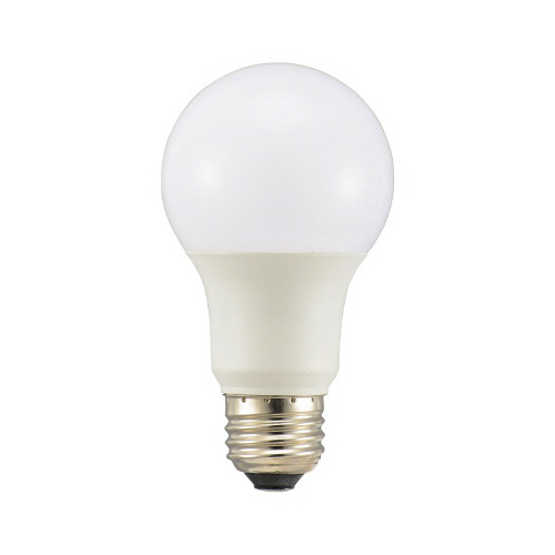 全光束860ルーメン、白熱電球60形相当の明るさ。光の広がり約280°の全方向タイプ。省エネ法2027年度目標基準達成。LED5年保証対象商品。
