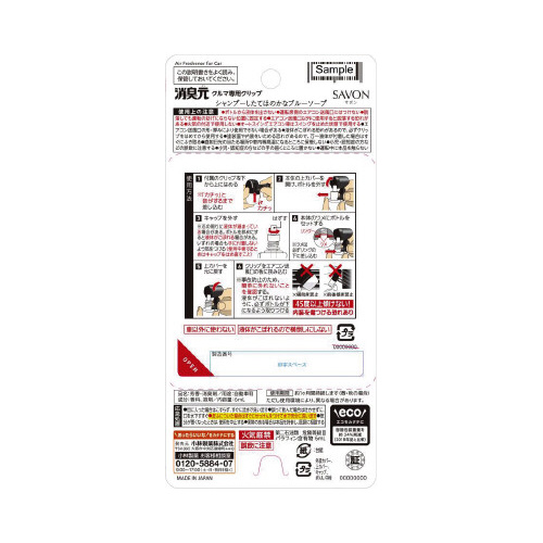 クルマの消臭元SAVONクリップ ブルーソープ1P