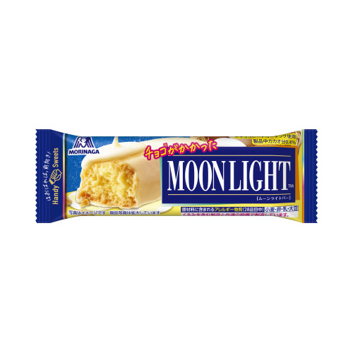 ふんわりまろやかな卵の味わいとサクサク食感が特徴のムーンライトにホワイトチョコレートをコーティングしたハンディスィーツ