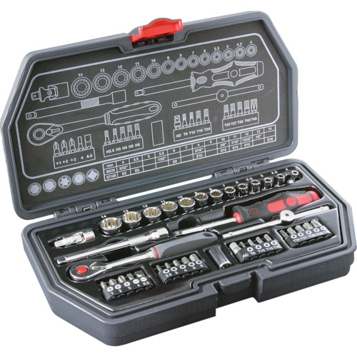 ●ラチェットハンドル140mm、スピンナーハンドル150mm、ユニバーサルジョイント、エクステンションバー150mm、スライディングTハンドル、ビットアダプター、ソケットアダプター