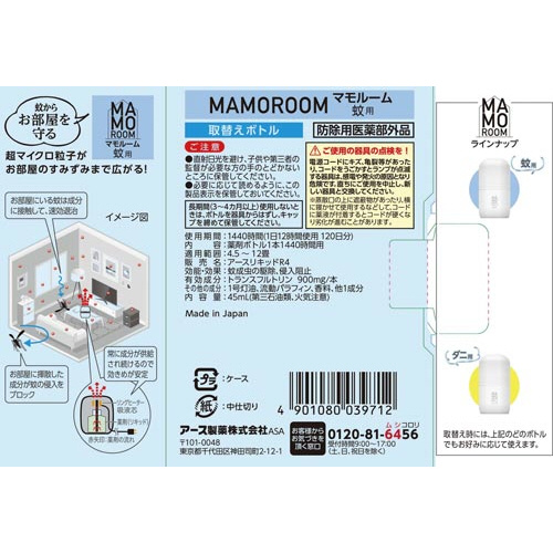 マモルームの器具で使用できます。超マイクロ粒子がお部屋のすみずみまで広がり、蚊からお部屋を守ります。