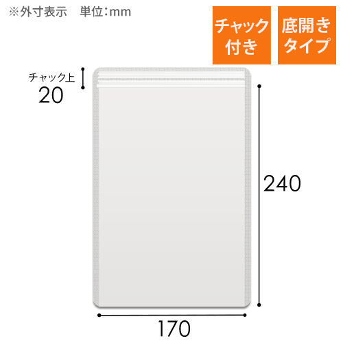 開封用のチャックが付いた170×260(240)mmのラミネート袋(チャック袋)。安価で陳列スペースを取らない平袋タイプです。