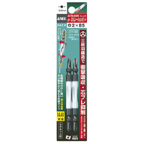 独自の三枚羽トーション構造が衝撃を吸収しビット先端部の負荷をやわらげます。