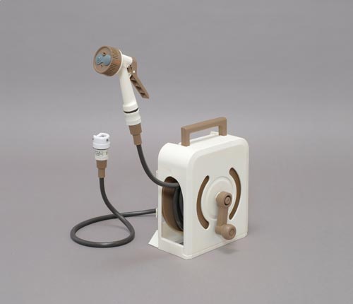 雨風や直射日光からホースを守るハンディタイプのフルカバーホースリールです。アーチ状の巻き取り口がホースの片寄りを防ぐので、ホースの巻き取りが非常に簡単です。耐圧糸入り防藻機能付ホースを採用しています。
