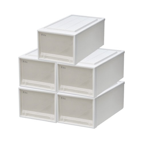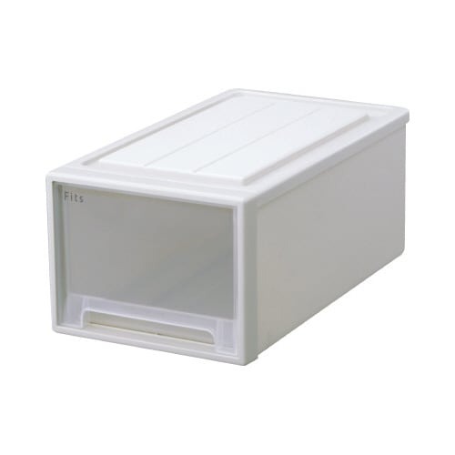 クローゼット収納に最適な収納ケースです。積み重ねてもたわみにくい丈夫な前枠付き。上下凹凸を施している為、積み重ねてもぴったりフィット。前倒れ防止機能付き。別売りキャスターを付けることもできます。