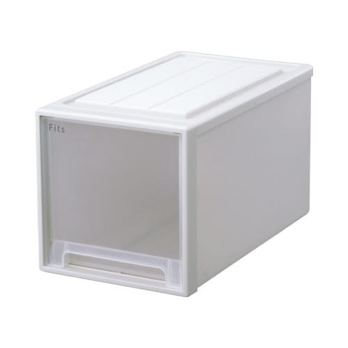 クローゼット収納に最適な収納ケースです。積み重ねてもたわみにくい丈夫な前枠付き。上下凹凸を施している為、積み重ねてもぴったりフィット。前倒れ防止機能付き。別売りキャスターを付けることもできます。
