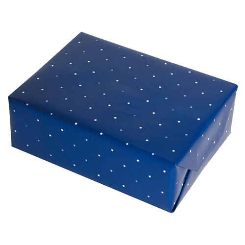 サイズが788×530mmでドット柄の包装紙。材質は紙で、表面の色は上品な印象のブルー(青)です。ギフトボックスなどのラッピングにいかがでしょうか。リボンやシールなどでアレンジも◎その他に色違いのグリーン、ブラウンもご用意しております。