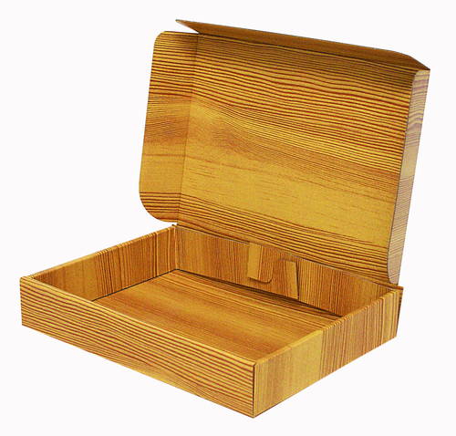 材質はE/F(1.5mm厚)の両面撥水加工されたダンボールです。表裏とも木目調で高級感アップ!