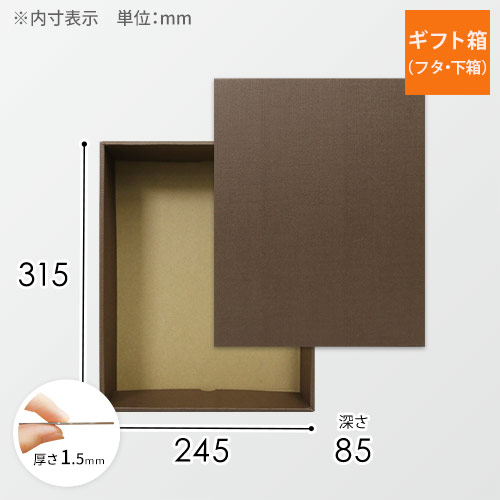 深さが8.5cmありボリュームのあるギフトセットや商品発送用に最適です。蓋と下箱がセットになっており、組立式です。
