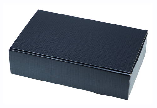 材質はB/F(3mm厚)のダンボールで、表面の色は黒(絹目格子柄エンボス)・内側の色は白です。