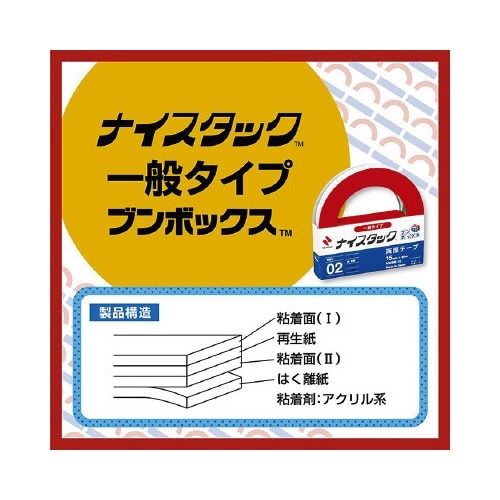 両面テープの定番、ニチバンのナイスタック。紙の貼り合わせ、オフィスの補修などに便利!簡易包装により、シュリンクパックを削減しました。大量使用には、ゴミも減らせる箱入りがおすすめです。