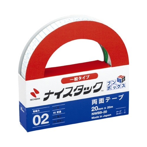 両面テープの定番、ニチバンのナイスタック。紙の貼り合わせ、オフィスの補修などに便利!簡易包装により、シュリンクパックを削減しました。大量使用には、ゴミも減らせる箱入りがおすすめです。